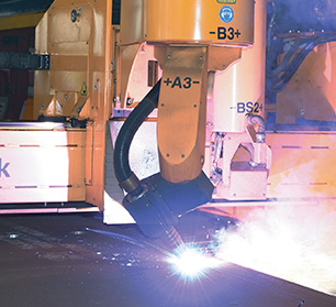 數(shù)控落地鏜銑床TH6920,采用西門(mén)子公司數(shù)控系統(tǒng),刀庫(kù)容量40把。配合回轉(zhuǎn)工作臺(tái)使用,更好地保證關(guān)鍵結(jié)構(gòu)件的形位公差要求,可完成采煤機(jī)大型結(jié)構(gòu)件的精加工,加工精度達(dá)6級(jí)